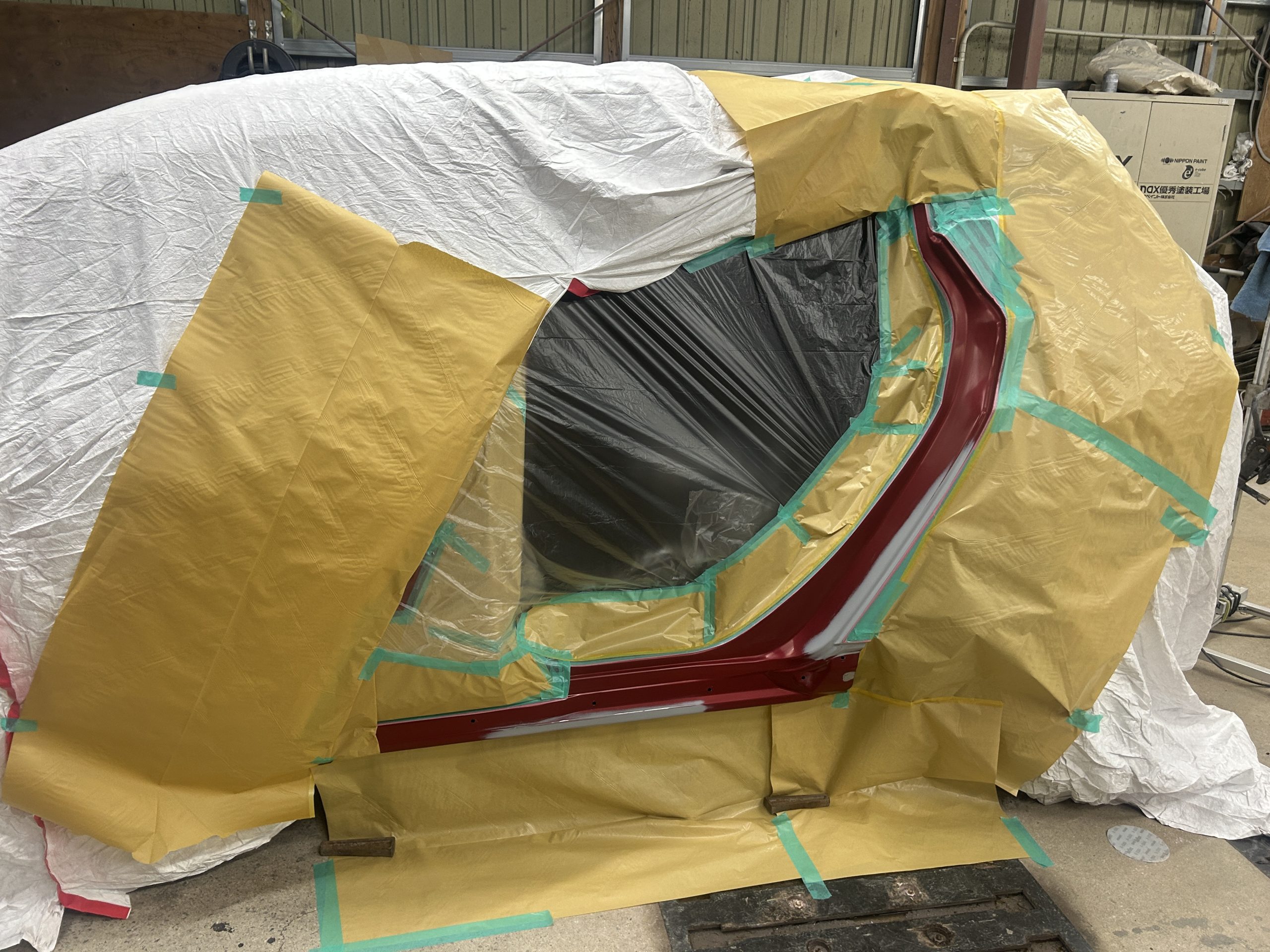 メインで塗装する前に新品ドアと車体の内側を先に塗装します。