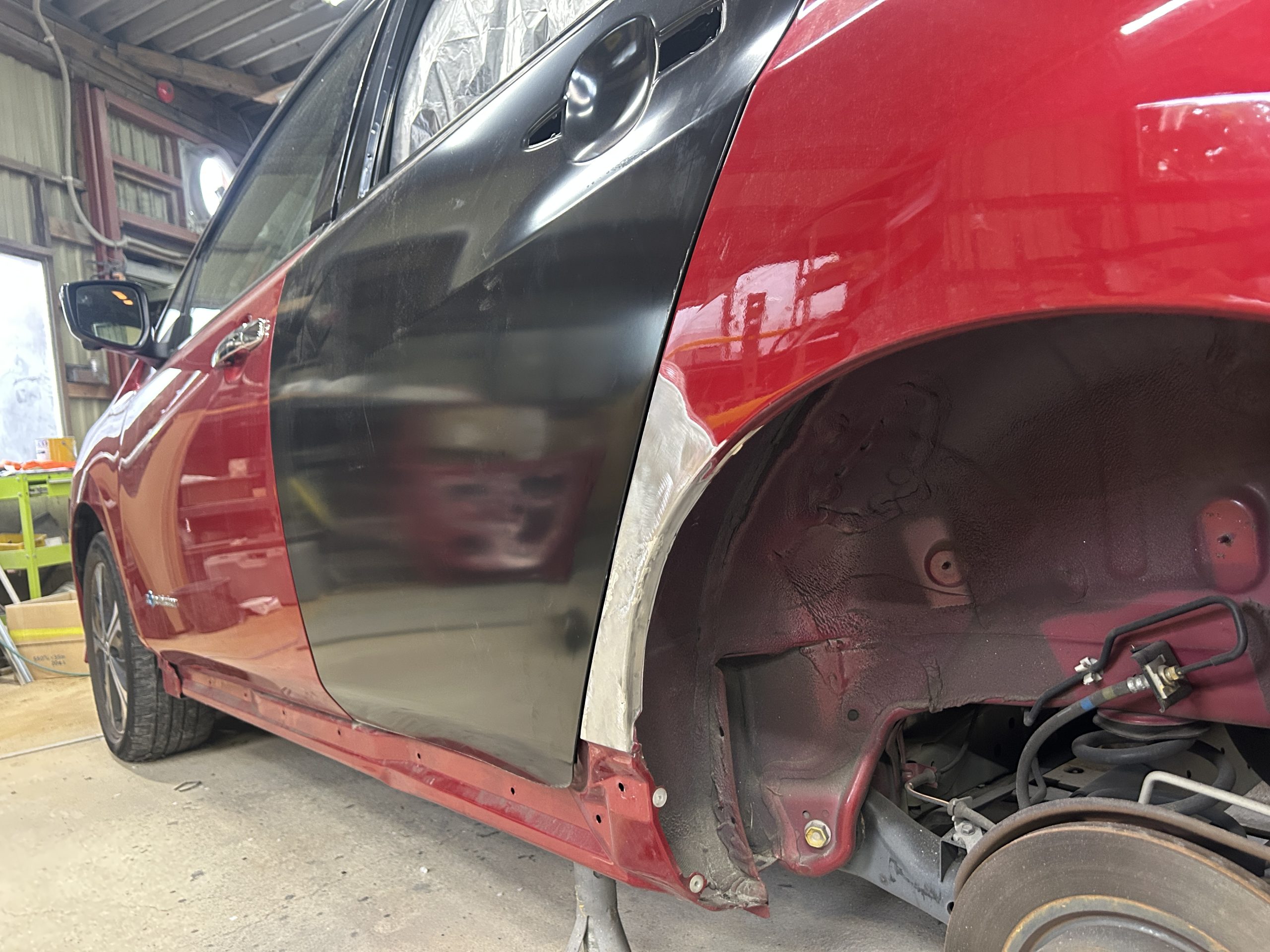 パネルはフロントと違ってねじで固定されているのではなく溶接されているので、直せる技術があればできるだけ鈑金するほうが車のためには良いと当店では考えています。