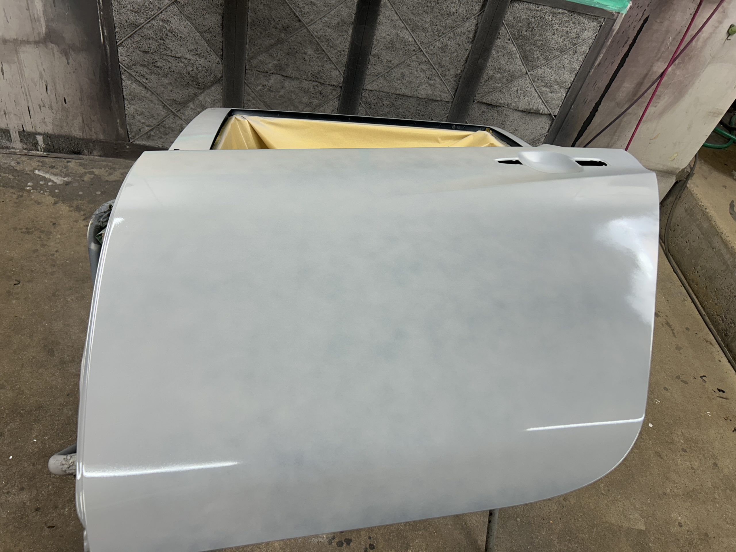 メインで塗装する前に新品ドアと車体の内側を先に塗装します。